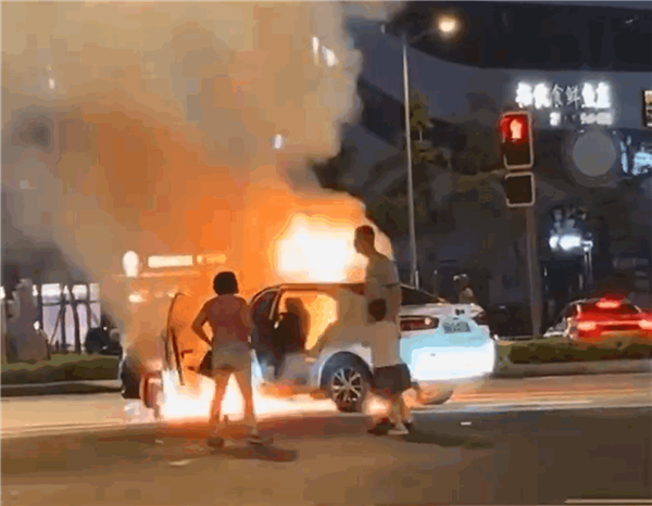 车辆在路口突然起火,烟气不对乘员造成伤害”,